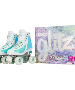 Crazy Skates Disco Glitz Sequin Fashion Rollerskates Teal 31-34