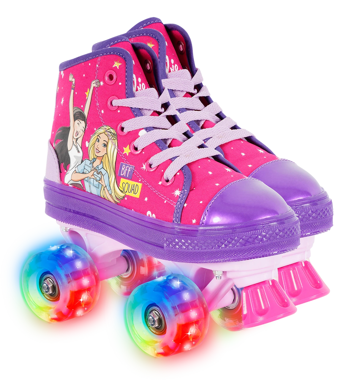 This Barbie light up skate will have you leaving a trail of light as you cruise the paths. Features LED light up wheels adding flare and style as you skate. The high top boot with smooth ride bearings will provide confort as you skate.