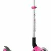 Safe, patented integrated folding system with a push button Trolley mode compatible High rebound PU casted front wheels (121mm) & rear wheel (80mm) all mounted on ABEC 5 bearings Patented steering lock button fixes the steering system of the two front wheels to only move forward & backward New wider composite deck design in dual-colour with a nylon reinforced body frame to support up to 50kg Durable & comfortable TPR handlebar grips 3-Height anodized adjustable T-Bar with easy to use clamp for up to 6+ Extra-long & wide composite rear brake to prolong wheel longevity