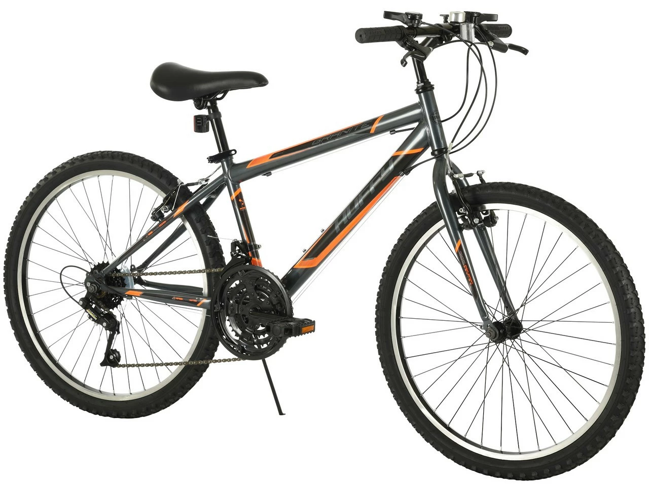 This 24-inch Granite Mountain Bike takes you on your path to fun. The sturdy steel frame mountain bike features 15-speed index shifting so you can ride through the neighbourhood, on gravel, in dirt and over hilly terrain! The comfortable saddle features an alloy quick release which makes it easy to adjust to the right height. Sleek styling with the latest colours on a durable frame, the Huffy 24″ mountain bike delivers one great adventure!