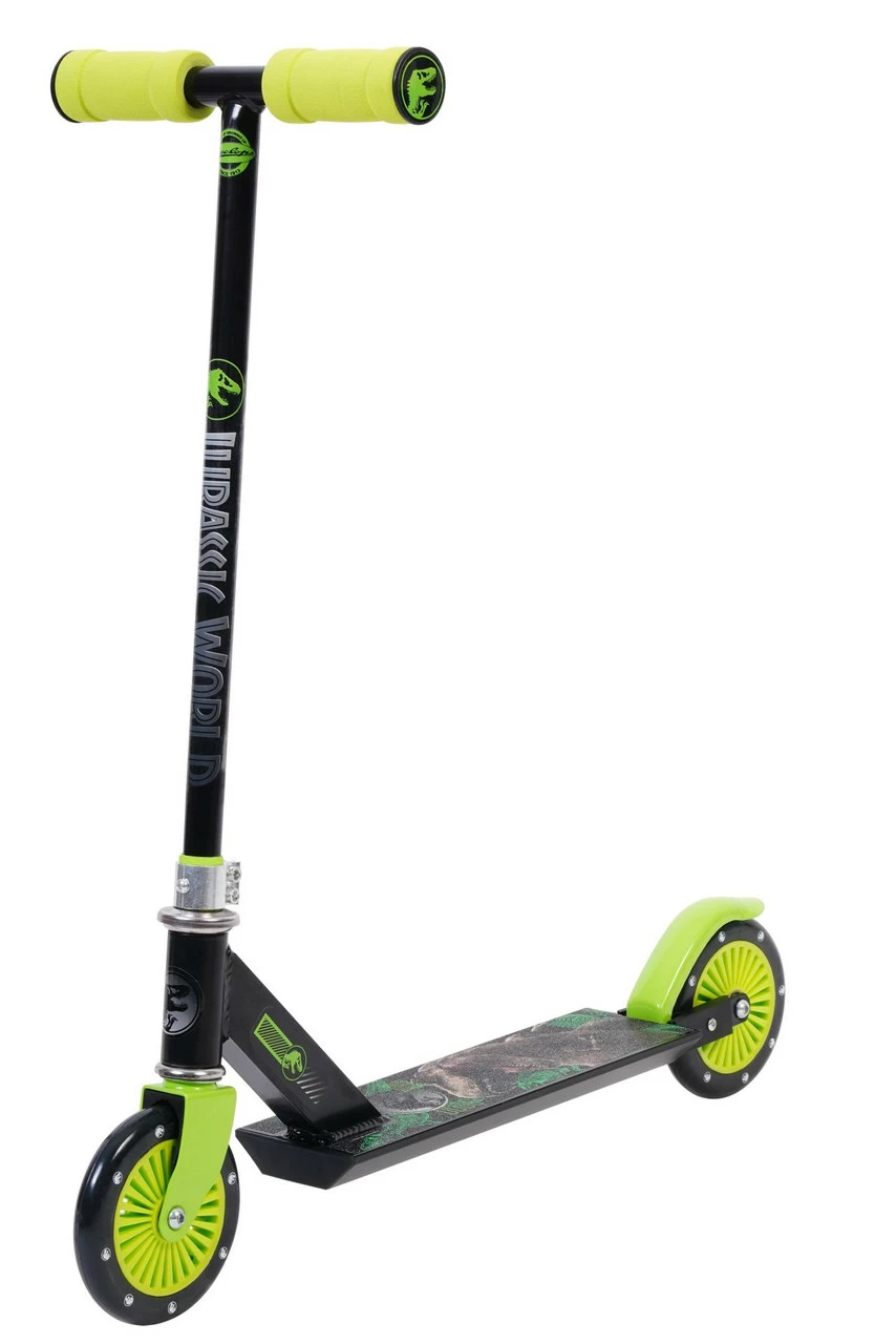Jurassic World Inline Scooter alloy +steel +plastic Ages 5+ Weight Capacity: 50kg Dimensions Box: 60.5x10x27cm Dimensions Set-Up: 62.5×21.5x56cm Weight of item: 1.6kg Needs to be assembled: Y