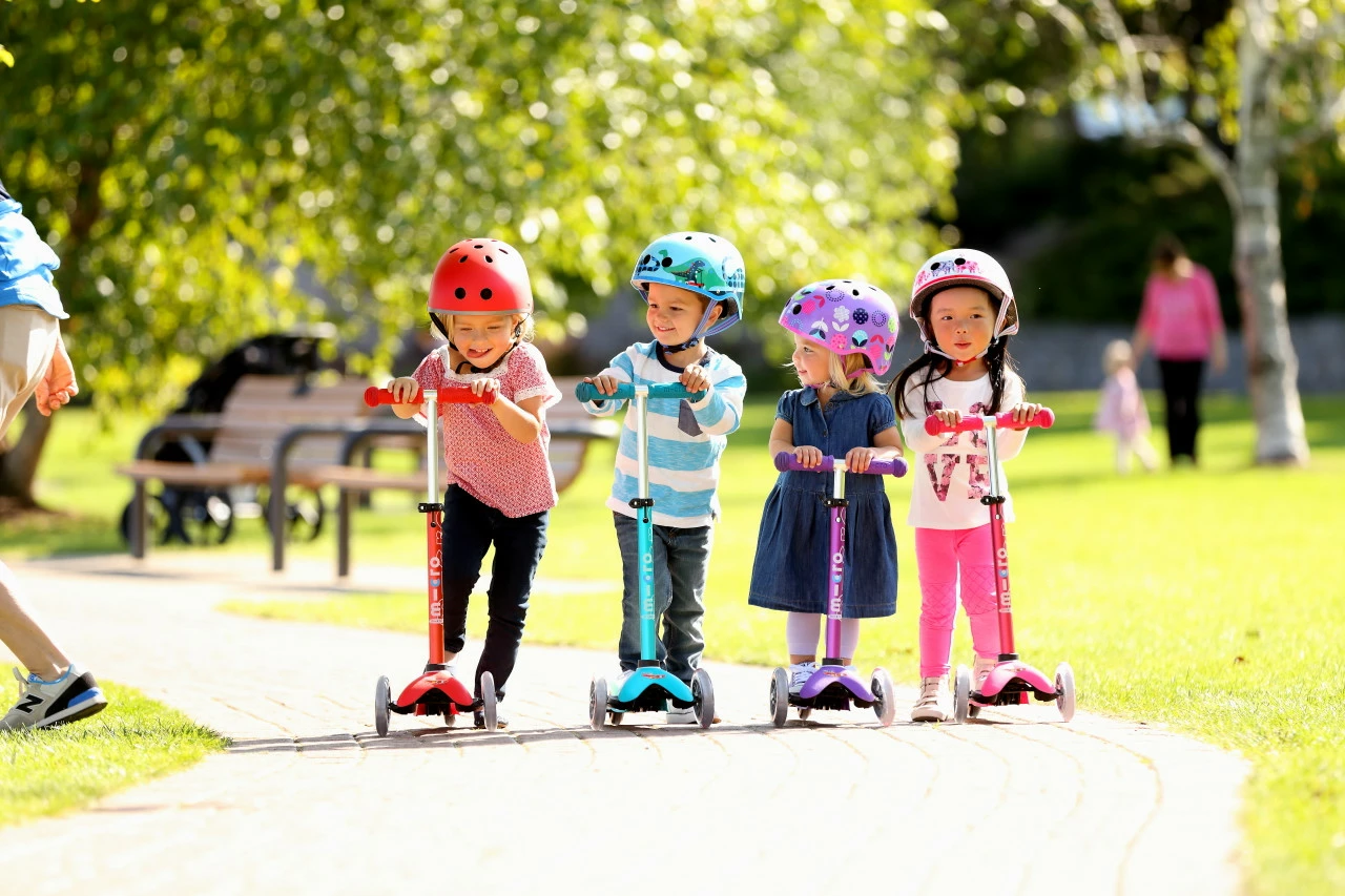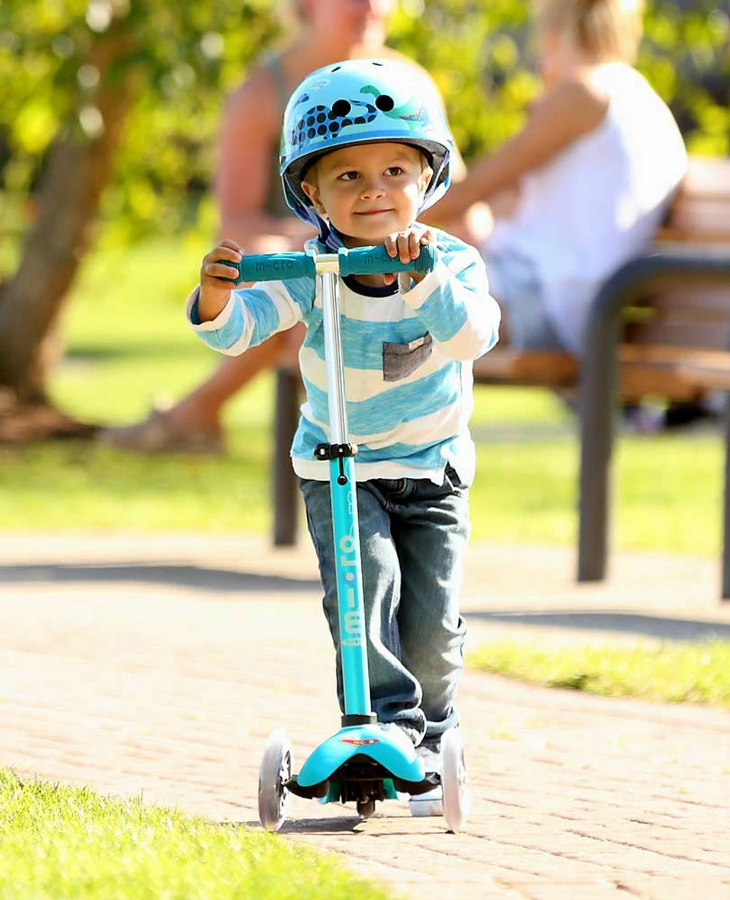 The new Mini Micro Deluxe is the reimagined version of the world renowned classic. This version features the much-requested adjustable t-bar, a raised silicon deck for stability, and an annodised finish to look great and protect from rust. The Mini Micro Deluxe’s intuitive ‘lean and steer’ scooting style is easily understood by younger children and will greatly improve your child’s balance and co-ordination which are vital for the development of early motor skills. It’s lightweight and therefore perfectly suited for younger children as it enables them to negotiate pavements, steps and doorways without the help of mum or dad. The brake has been ingeniously designed so even the slightest pressure put on it will bring the scooter to a gentle halt. The Mini Micro Deluxe’s 3 wheels and sturdy deck provide stability, giving your child the confidence they need to master scooting. Both you and your child will enjoy the new found freedom, fun and independence that the Mini Micro Deluxe brings.