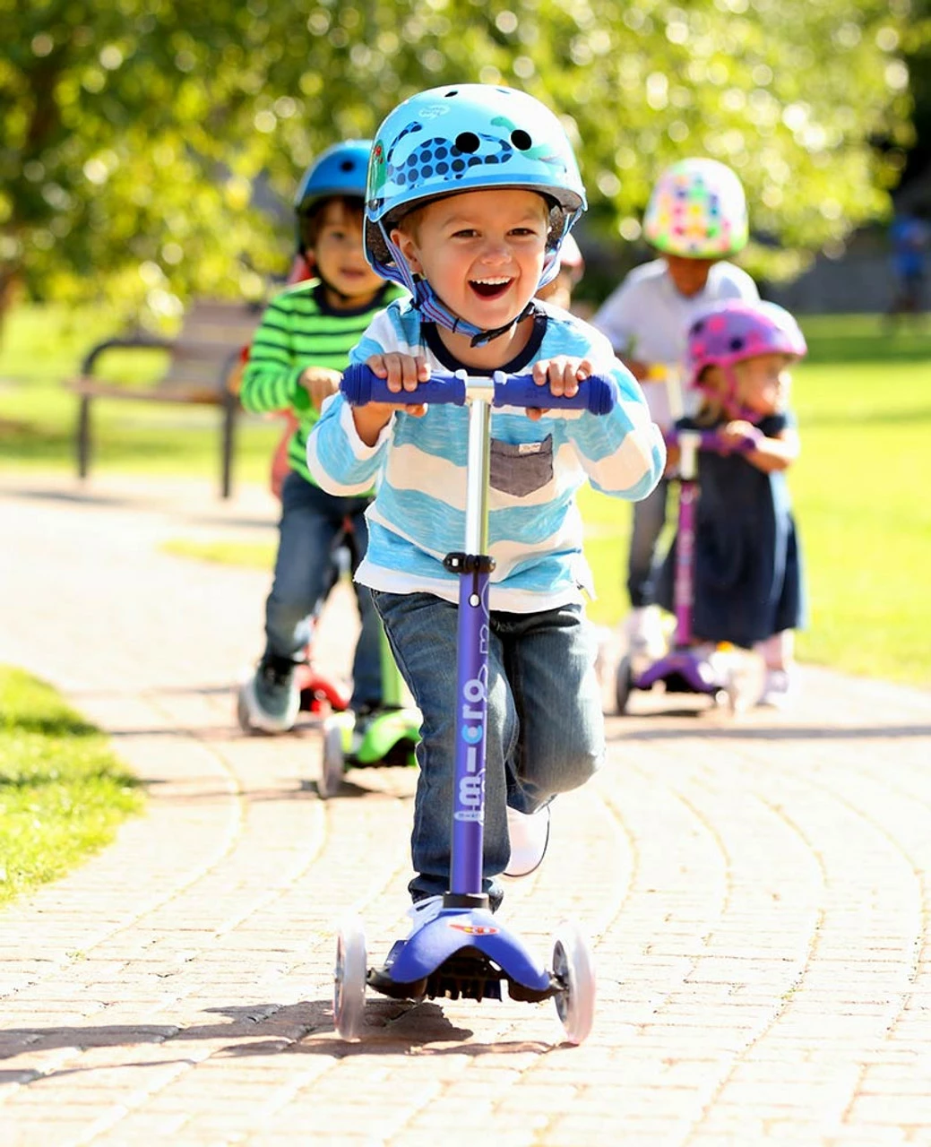 The new Mini Micro Deluxe is the reimagined version of the world renowned classic. This version features the much-requested adjustable t-bar, a raised silicon deck for stability, and an annodised finish to look great and protect from rust. The Mini Micro Deluxe’s intuitive ‘lean and steer’ scooting style is easily understood by younger children and will greatly improve your child’s balance and co-ordination which are vital for the development of early motor skills. It’s lightweight and therefore perfectly suited for younger children as it enables them to negotiate pavements, steps and doorways without the help of mum or dad. The brake has been ingeniously designed so even the slightest pressure put on it will bring the scooter to a gentle halt. The Mini Micro Deluxe’s 3 wheels and sturdy deck provide stability, giving your child the confidence they need to master scooting. Both you and your child will enjoy the new found freedom, fun and independence that the Mini Micro Deluxe brings.