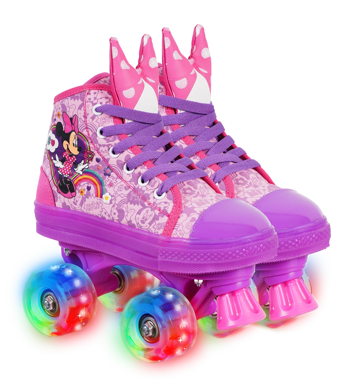 This Minnie light up skate will ensure you turn heads. Features LED light up wheels adding flare and style as you skate. The high top boot with smooth ride bearings will provide confort as you skate.
