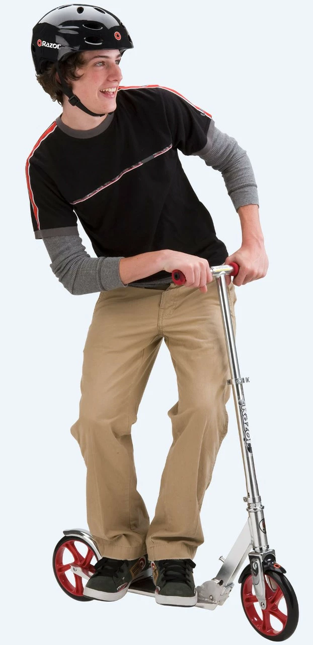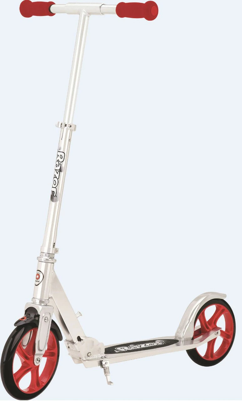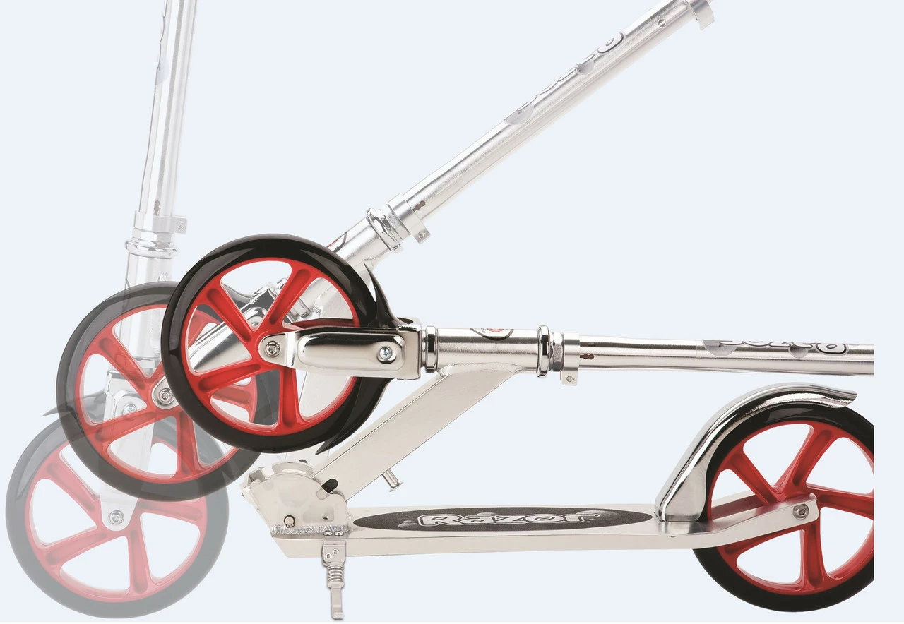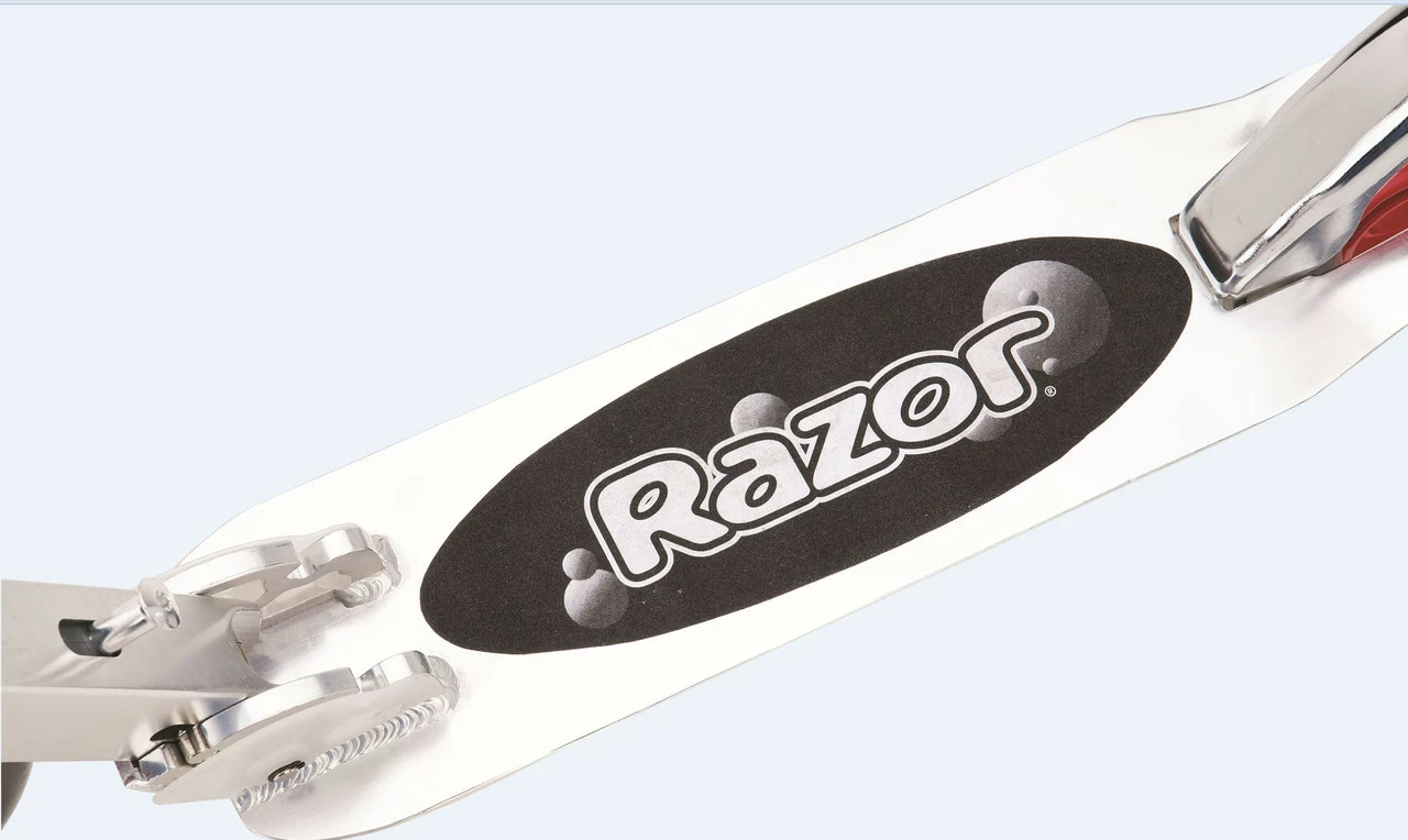 The Razor A5 Lux joins a kick scooter line well-known for its smooth ride, extra-large urethane wheels and cool profile make for the smoothest ride around. Anodized finish features bold colors and attention-grabbing graphics. Quick and easy to fold and ready to go, the Razor A5 Lux has a superstrong aluminum t-tube and large deck to comfortably support riders up to 100 kg.
